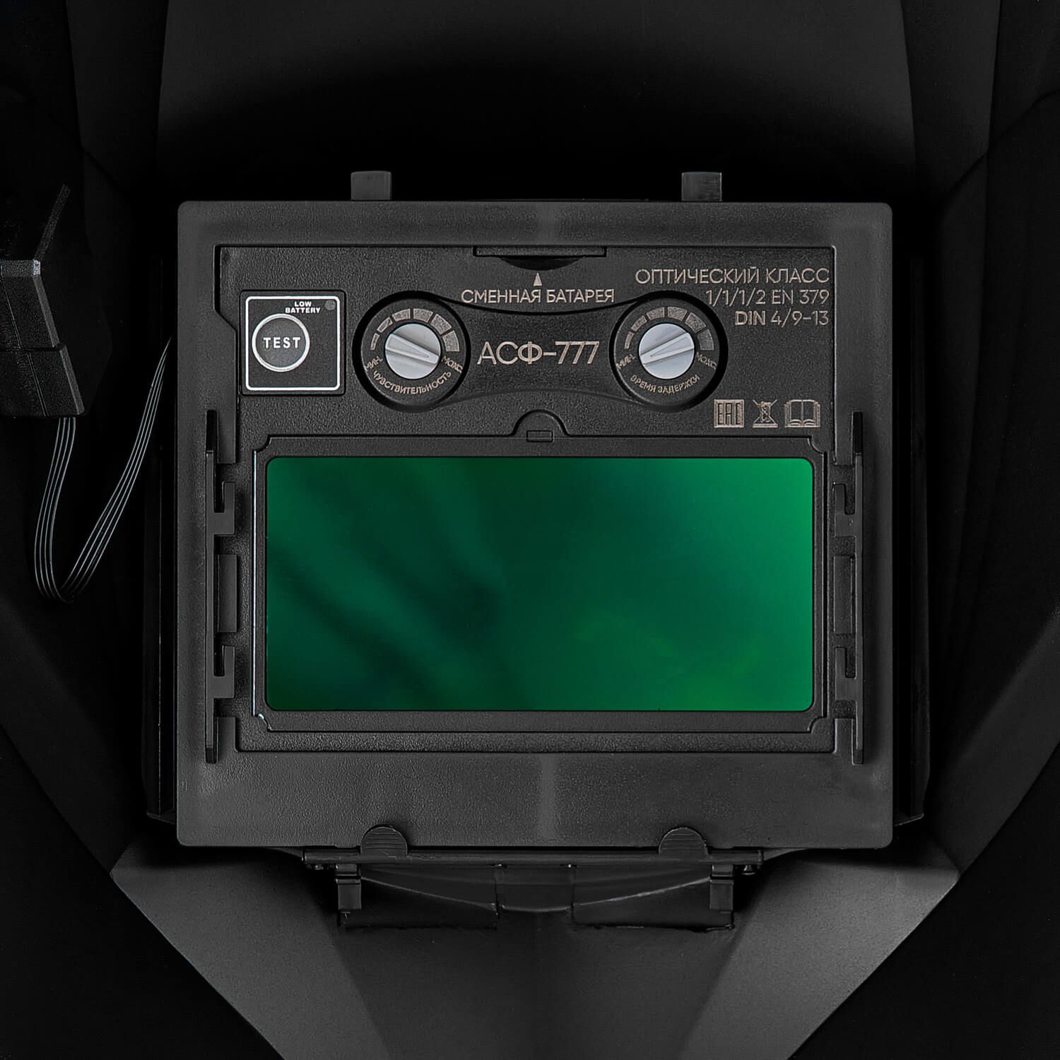 Особенности чёрной маски сварщика хамелеон АСФ 777:- Автоматическое затемнение.