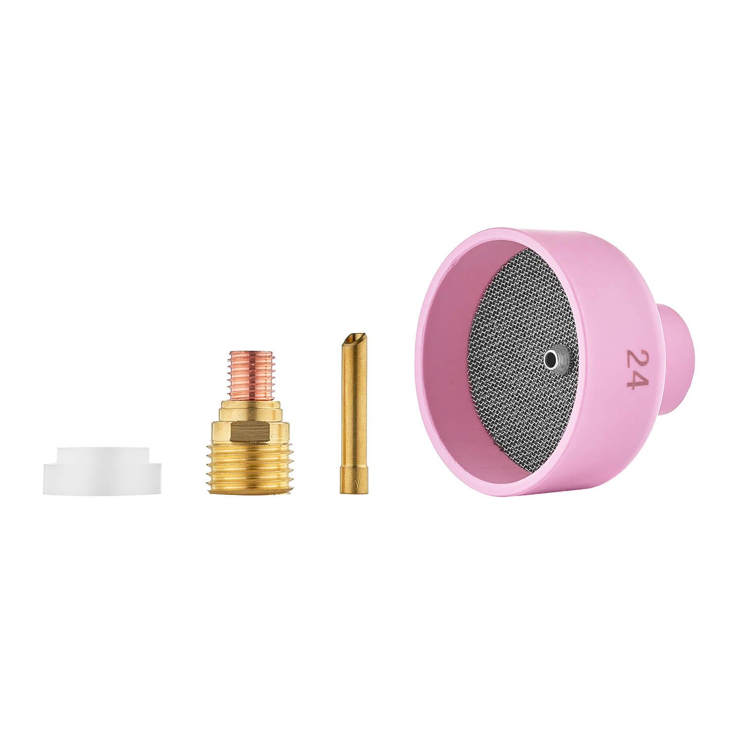 Особенность набора CLS0937 заключается в керамическом сопле со встроенной газовой сеткой. Внутренний диаметр чашки составляет 38 мм. Сопло с сеткой в сочетании с газовой линзой, создает равномерный ламинарный поток. Распределяет выходящий газ по всей окружности сопла, создавая высокий уровень защиты сварочной ванны.