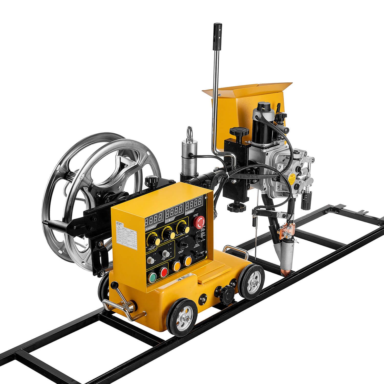 MZ 1250 HD состоит из инверторного источника питания и передвижной каретки, на которой установлен механизм подачи проволоки, бункер с флюсом и блок управления. Автомат в процессе работы передвигается по изделию или по уложенной на нем направляющей линейке.