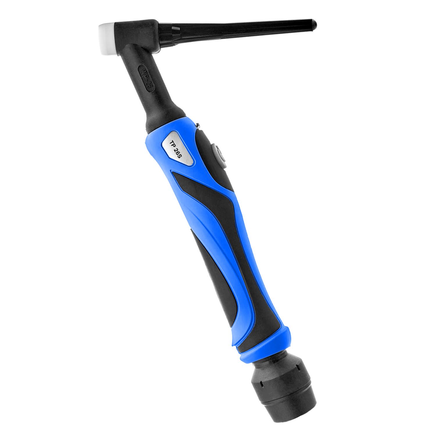 Особенности горелки TIG TP 26S:- Медная головка горелки и увеличенная медная жила силового кабеля позволяет использовать горелку на токах до 350 Ампер в промышленных условиях, где требуется максимальная отдача от оборудования и повышенная производительность.