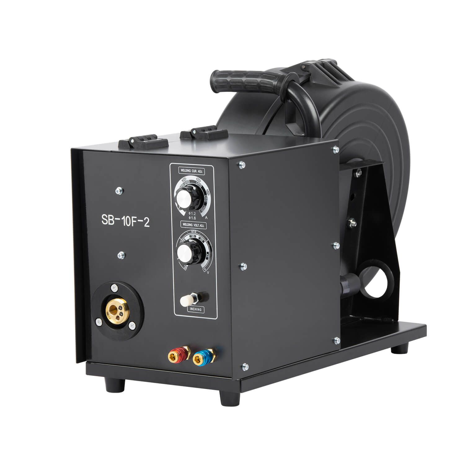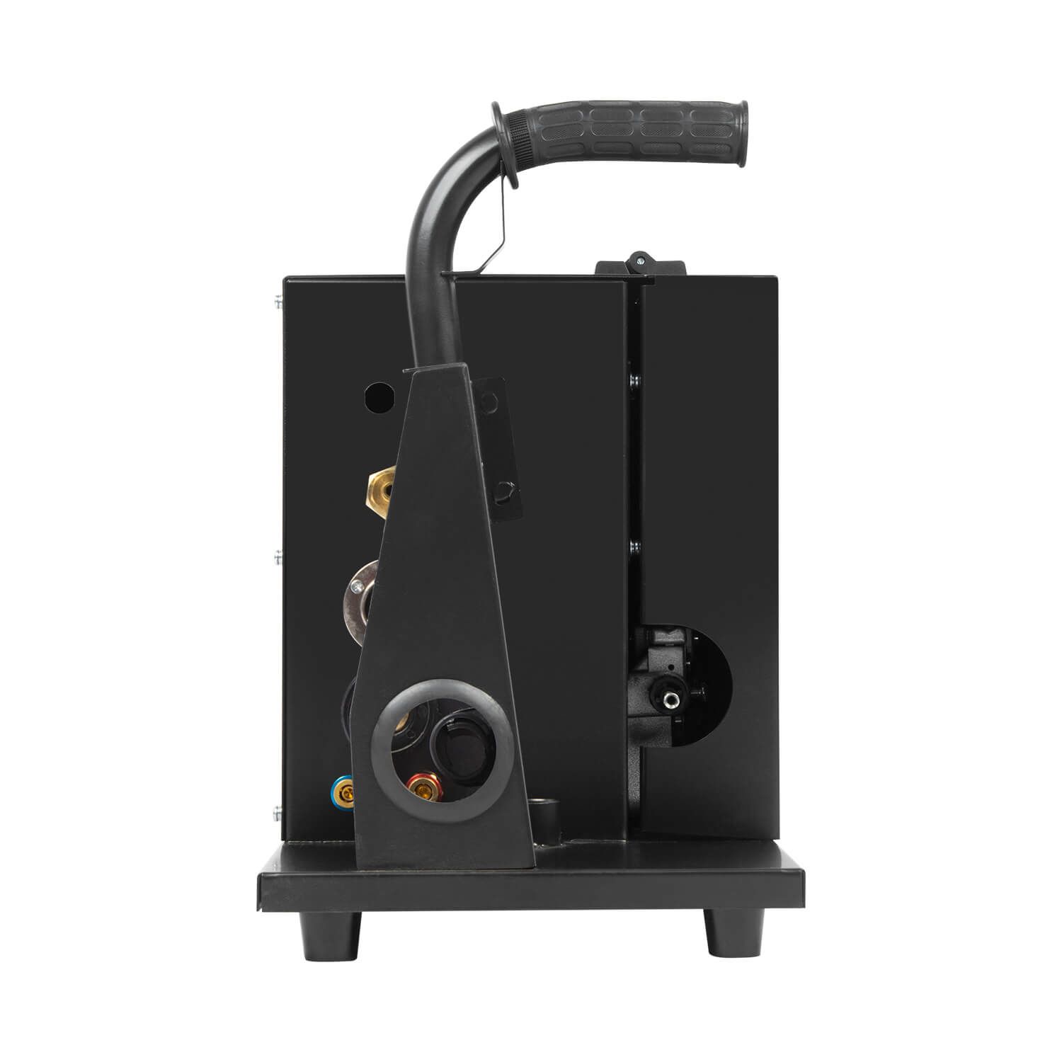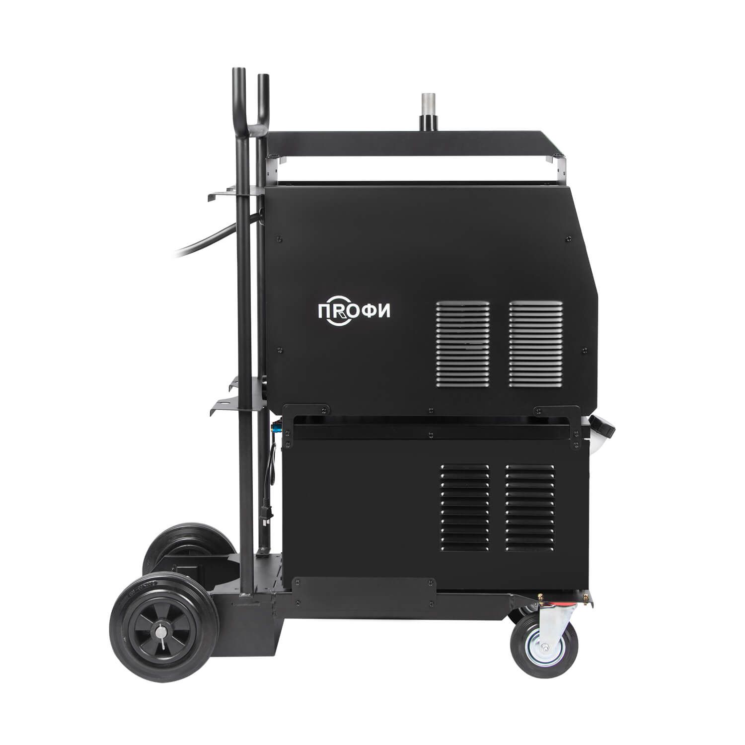 - Тележка для перемещения аппарата, механизма подачи проволоки, газового баллона и комплектующих. Тележка оснащена передними вращающимися колесами с тормозом и высокими устойчивыми задними колесами.