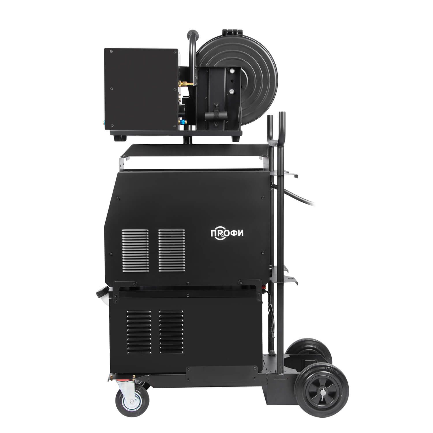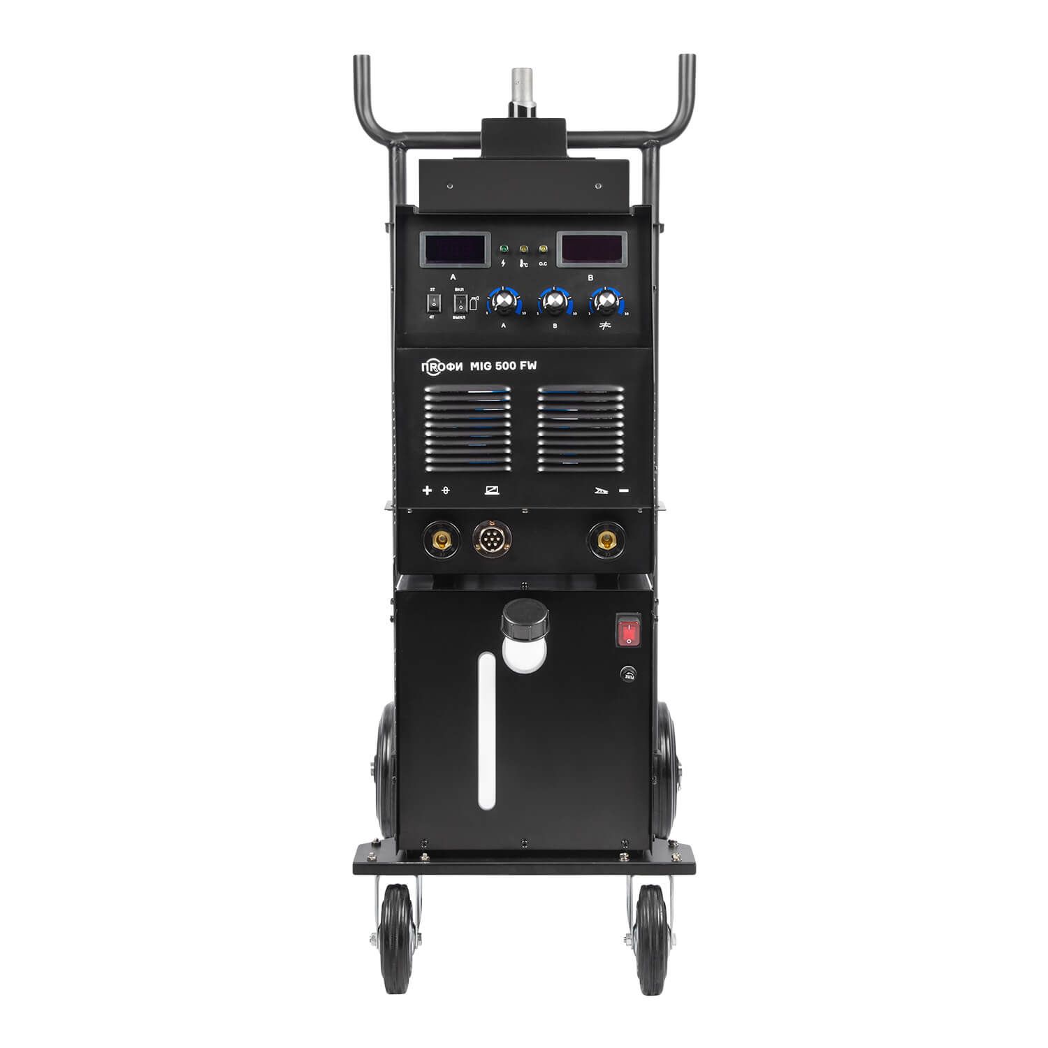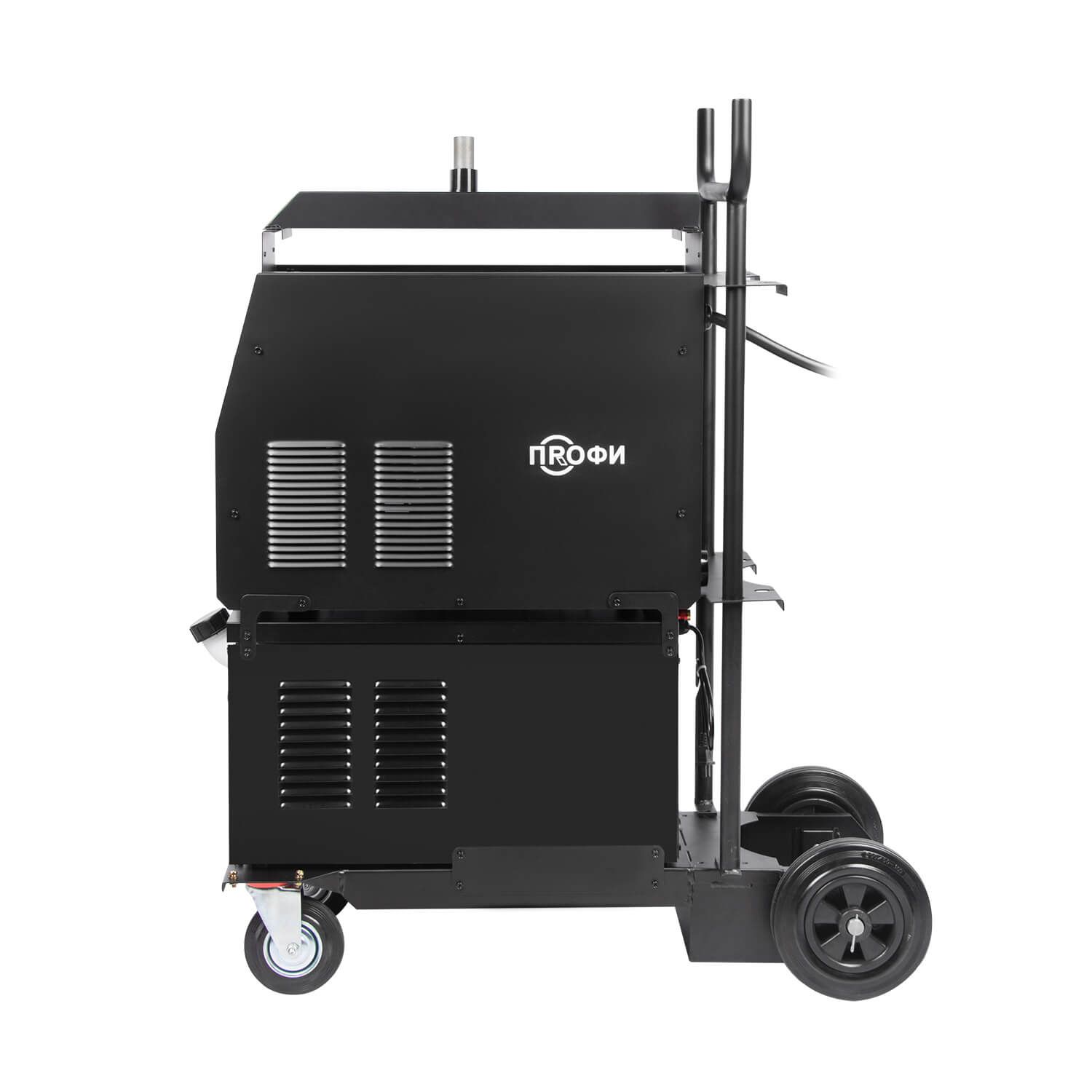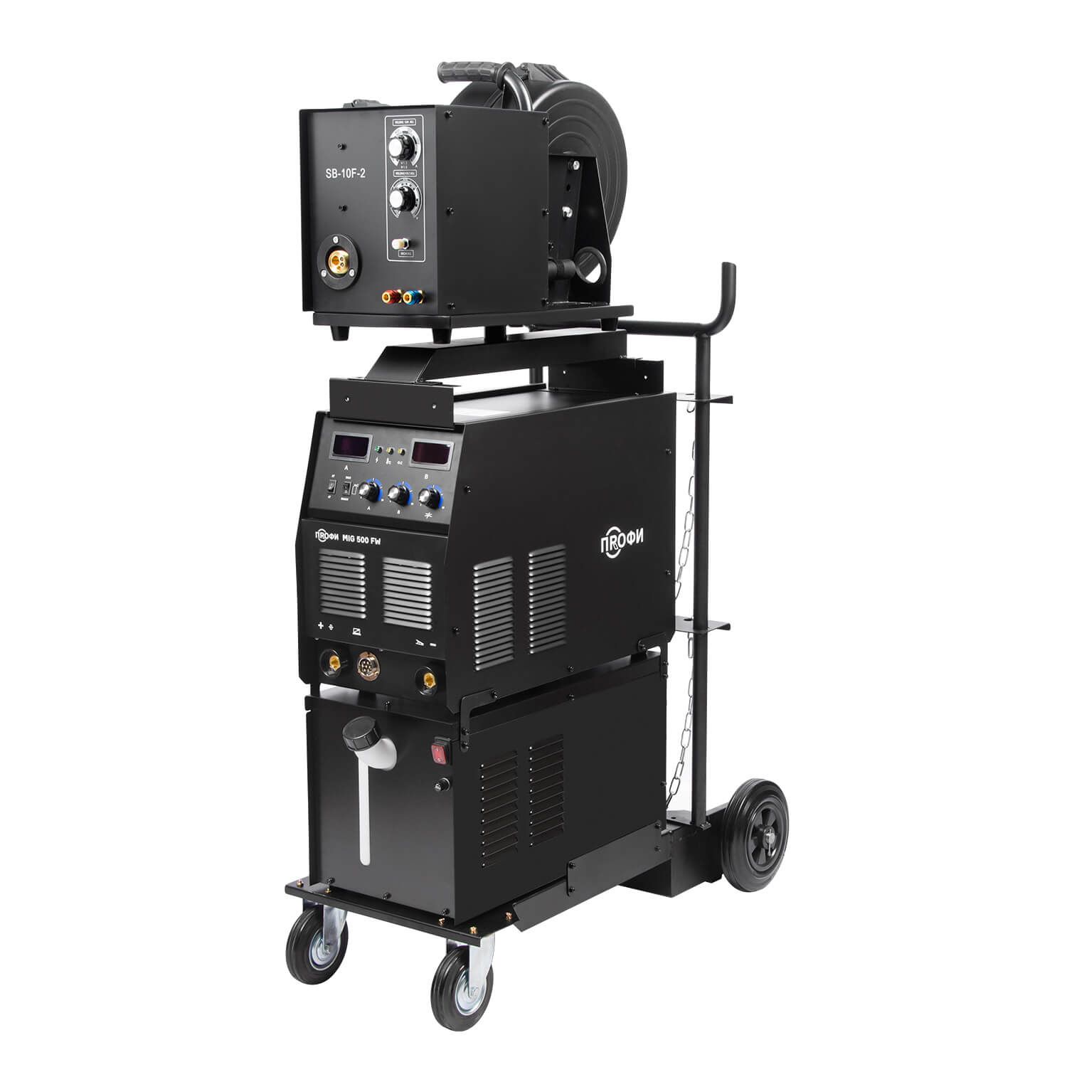 Аппарат ПРОФИ MIG 500 FW поставляется в сборе блоком водяного охлаждения объемом до 10 литров и с тележкой-платформой, которая обеспечивает более легкую и комфортную эксплуатацию оборудования. Тележка обладает надежной усиленной конструкцией. На нее можно установить сварочный источник, выносной подающий механизм, блок жидкостного охлаждения и газовый баллон объемом 40 литров.