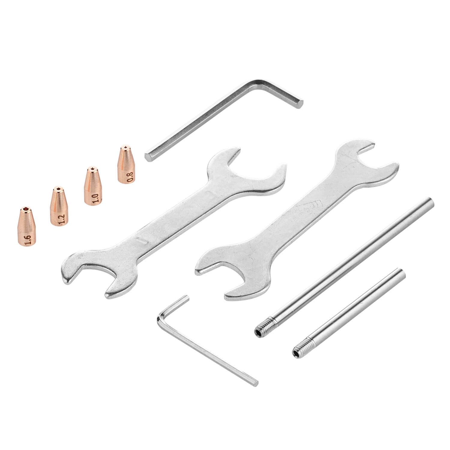 В комплект поставки входит ЗИП для замены направляющего канала и 4 наконечника диаметром 0,8; 1,0; 1,2 и 1,6 мм.